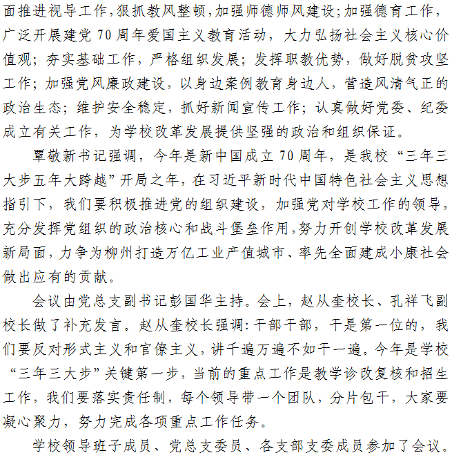 加强全面从严治党 落实政治责任担当 ——柳州市交通学校召开一季度党建工作会