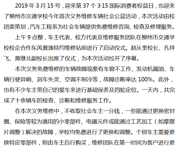 汽车故障大师修,义务服务我们干 ——记柳州市交通学校义务诊断、维修社会车辆活动