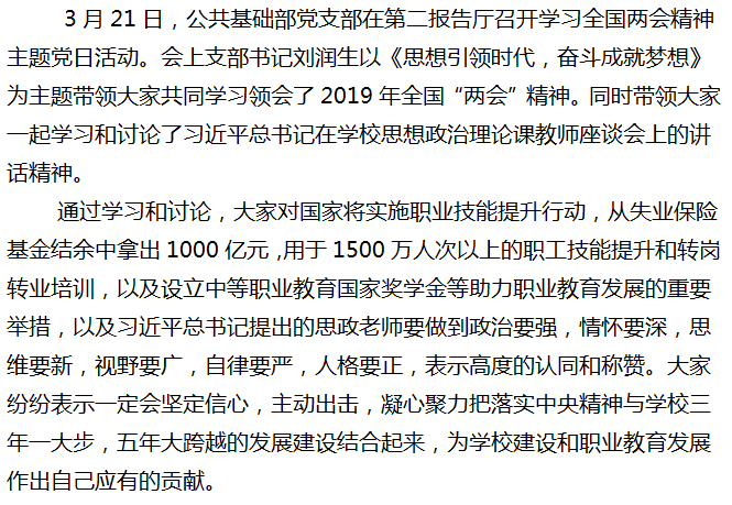 公共基础部召开学习全国两会精神主题党日活动