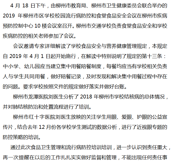 柳州市交通学校参加学校食品卫生管理和流行病防控培训