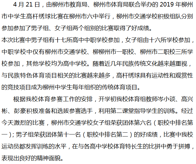 柳州市交通学校 组织学生参加柳州市中学生高杆绣球比赛获奖