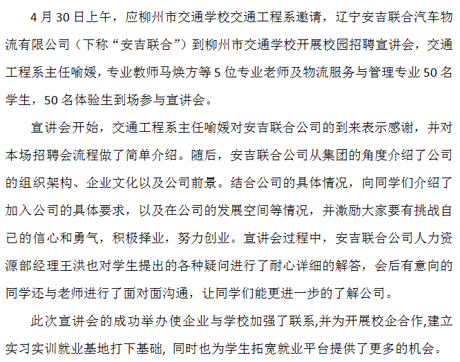 辽宁安吉联合汽车物流有限公司走进校园开展校园宣讲会