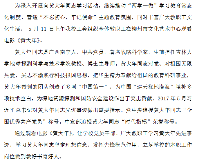 柳州市交通学校工会组织教职工观看电影《黄大年》