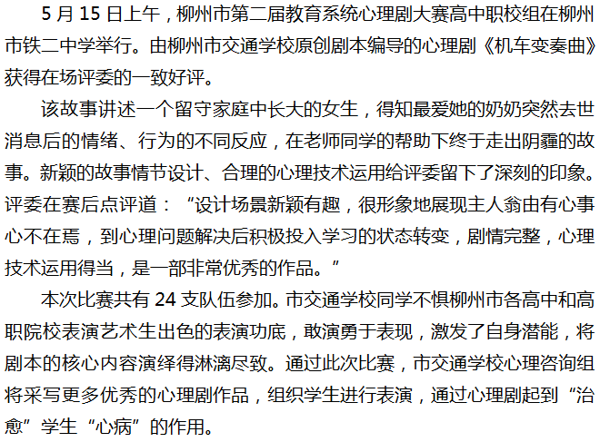 柳州市交通学校积极参加市第二届心理剧大赛