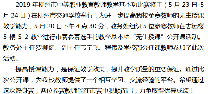 柳州市交通学校举办“无生授课”公开课为市赛热身