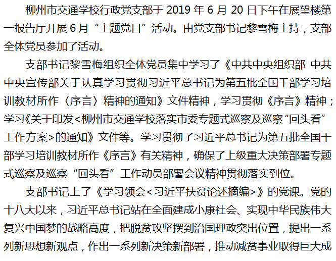 柳州市交通学校行政党支部 开展6月“主题党日”活动