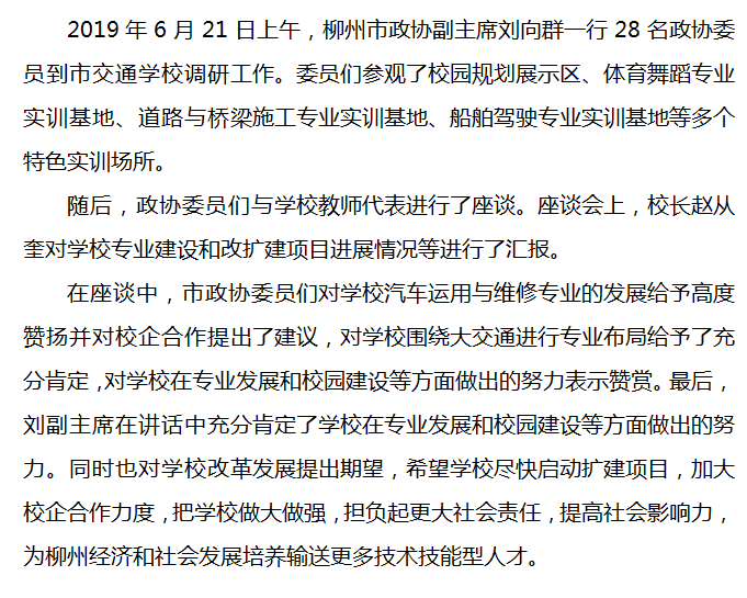 关注职业教育 助力改革发展 柳州市政协委员到市交通学校调研工作