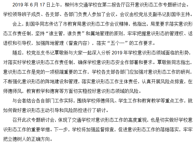 立足防范 守土有责 ——柳州市交通学校召开意识形态工作专题研讨会
