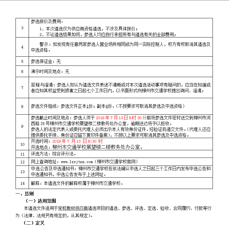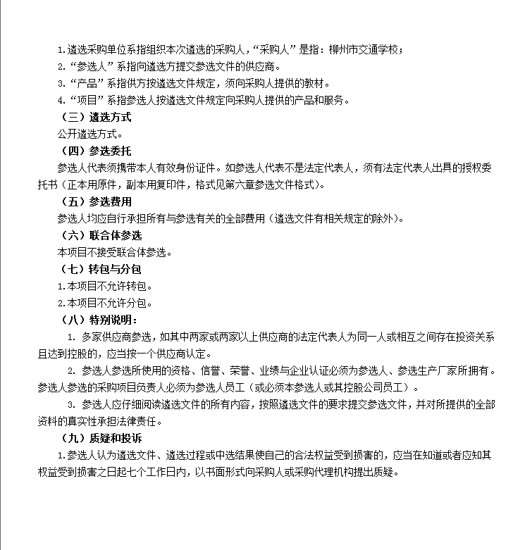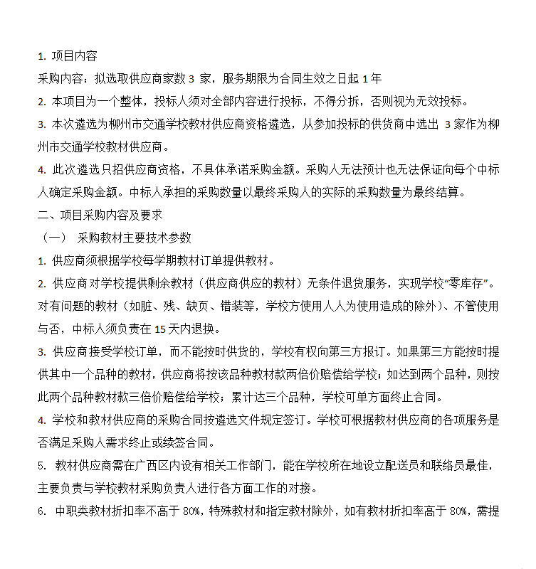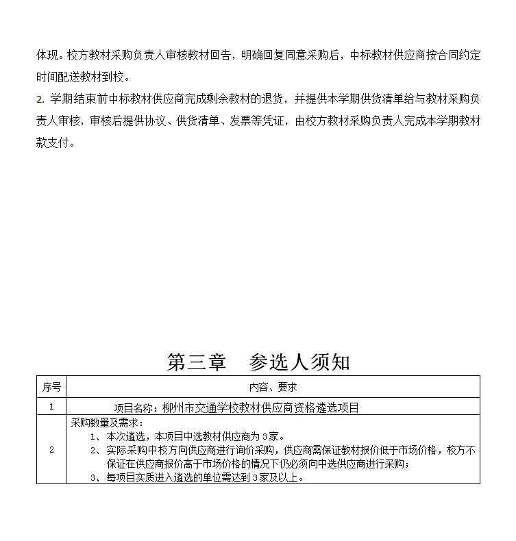 柳州市交通学校教材供应商 资格遴选项目