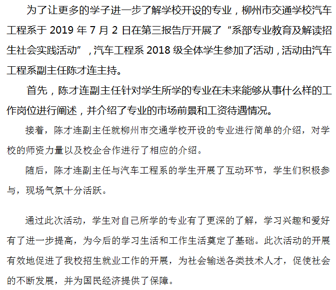 柳州市交通学校开展系部 专业教育及解读招生社会实践活动