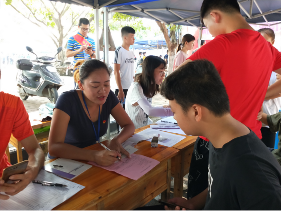 图为何俊梅同志在协助班主任开展新生报到注册
