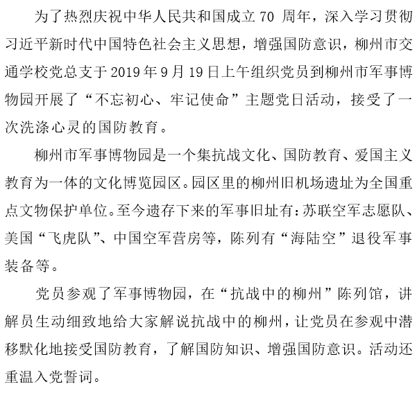 柳州市交通学校党总支 开展“不忘初心、牢记使命”主题党日活动