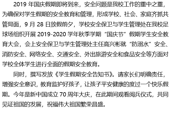 柳州市交通学校2019年 “国庆节”假期学生安全教育大会