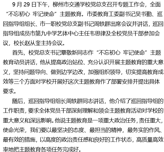 柳州市交通学校全面启动 “不忘初心 牢记使命”主题教育