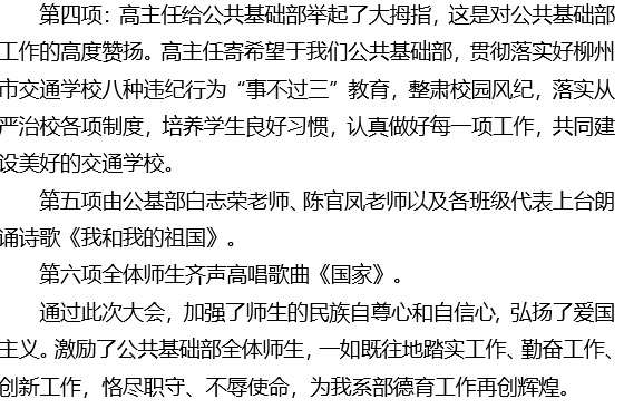 公共基础部庆祝新中国成立70周年 暨2019-2020学年秋季学期开学德育工作大会