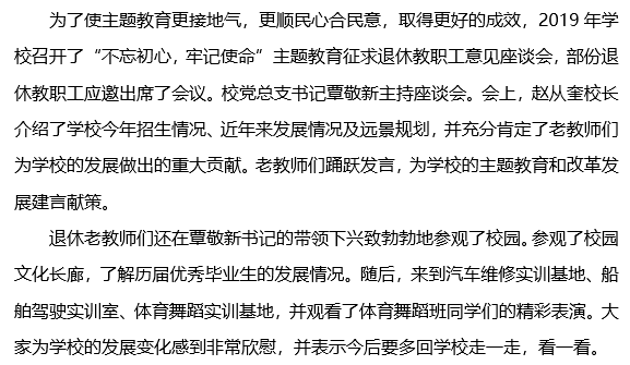 柳州市交通学校召开“不忘初心,牢记使命”主题教育 征求退休教职工意见座谈会