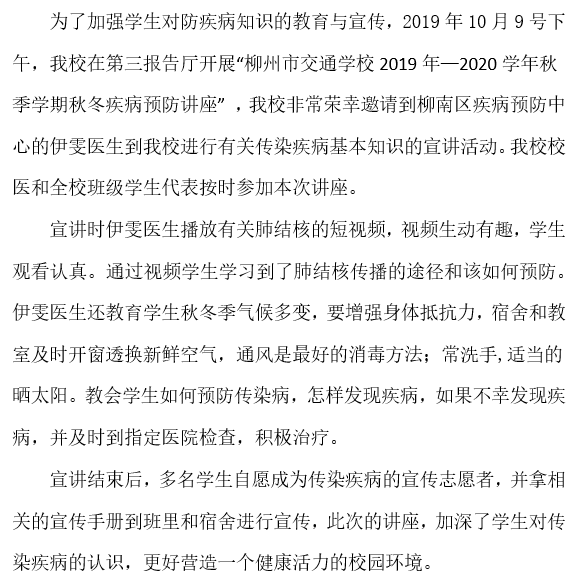 2019-2020学年秋季学期秋冬疾病预防讲座