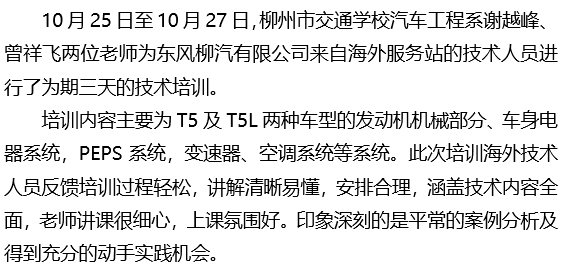 柳州市交通学校培训海外服务站技术人员