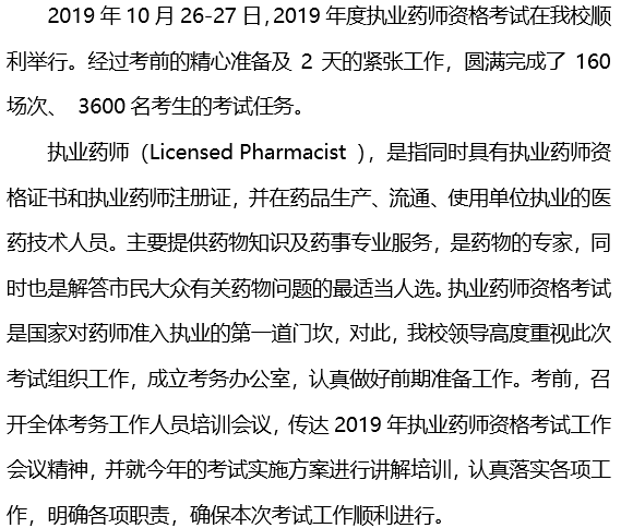2019年度执业药师考试在我校顺利举行