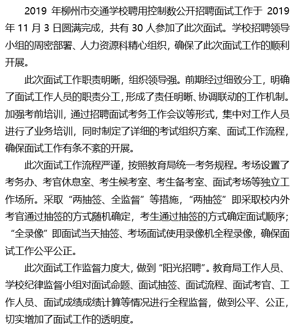 柳州市交通学校聘用控制数招聘面试工作圆满结束