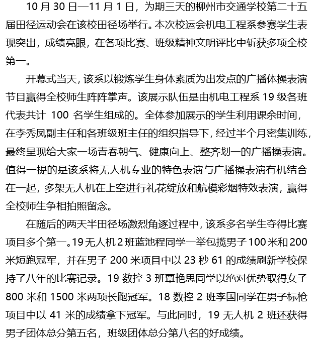 赛出自信,勇创佳绩 ——贺机电工程系在校运会中荣获多项第一