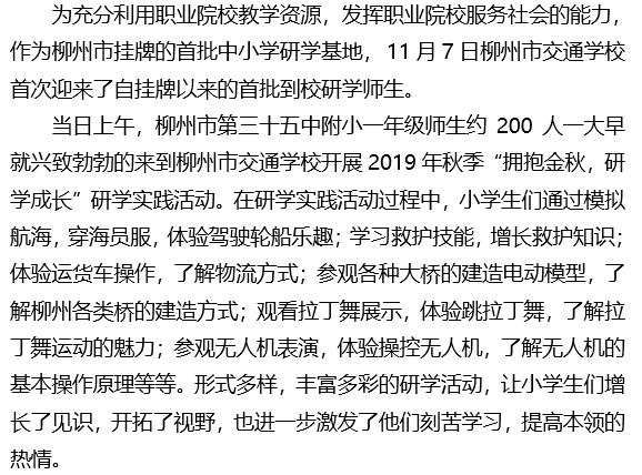 服务职业启蒙教育 彰显交通学校魅力 ——柳州市交通学校开展中小学生职业启蒙教育活动
