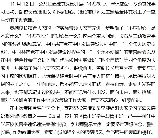 守初心砥砺前行 学案例警钟长鸣