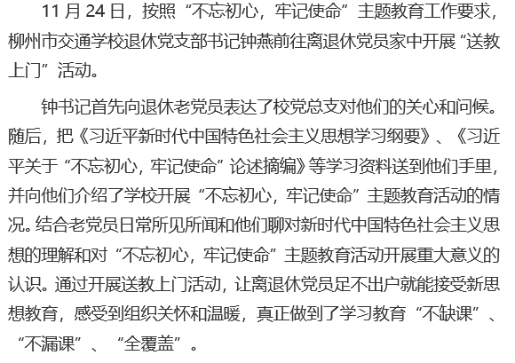 退休党支部开展“不忘初心,牢记使命”主题教育“送教上门”活动