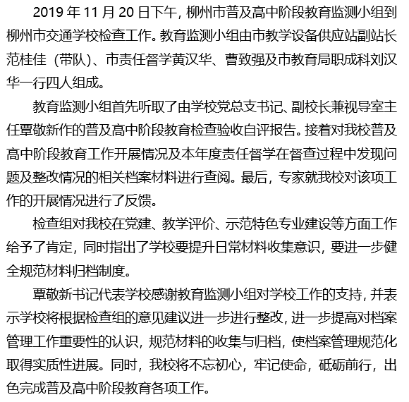 市交通学校顺利通过柳州市普及高中阶段教育监测测评