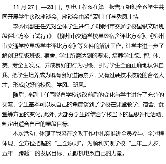 柳州市交通学校机电工程系开展学生诊改座谈会