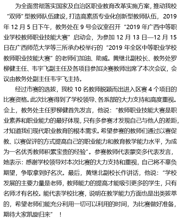 柳州市交通学校召开“2019年广西中等职业学校教师职业技能大赛”启动会