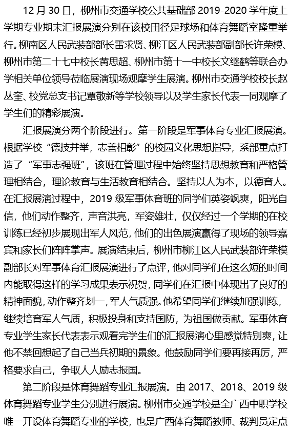 柳州市交通学校公共基础部成功举办 2019-2020学年度上学期专业期末汇报展演