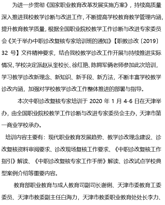 以培训为抓手促进学校教学诊改高质量全面深入推进 ——学校领导参加全国中职诊改复核专家培训班培训报道