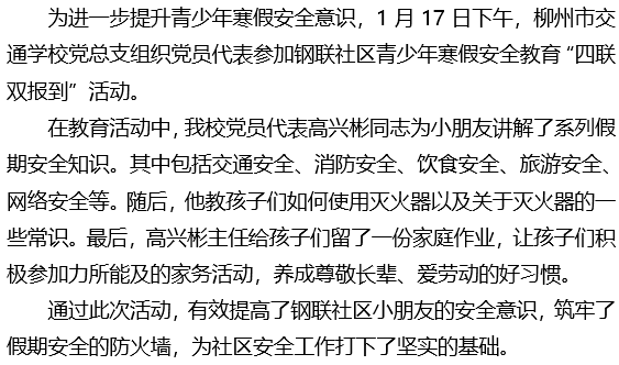 柳州市交通学校党总支参加钢联社区四联双报到活动