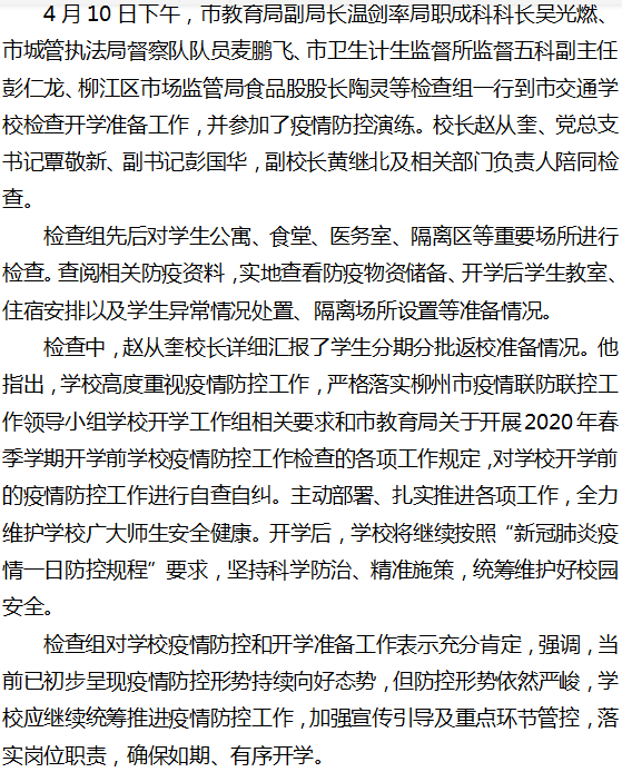 市教育局副局长温剑率检查组到交通学校检查开学准备工作