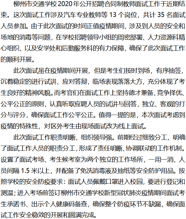 柳州市交通学校寒假阶段公开招聘面试工作圆满结束