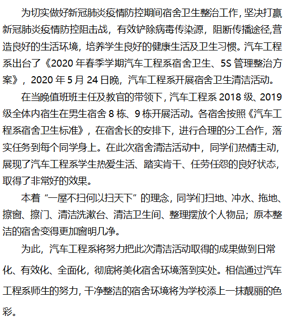 师生同心扫宿舍,干净整洁无死角 ——汽车工程系宿舍清洁活动