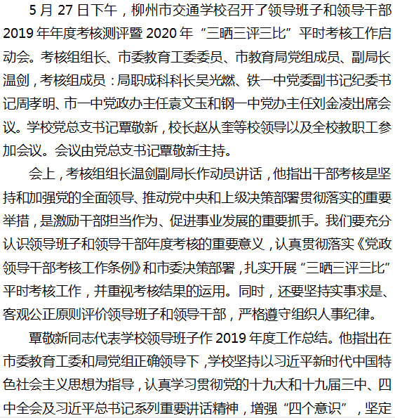 用好干部考核“指挥棒”——柳州市交通学校召开领导班子和领导干部2019年年度考核测评暨2020年“三晒三评三比”平时考核工作启动会