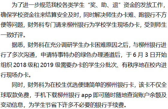 便民服务,我们在行动 ——财务科请柳州银行上门为学生现场办卡