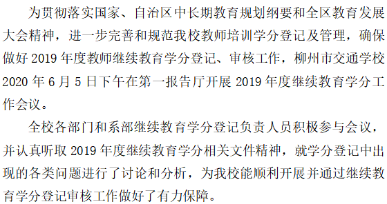 柳州市交通学校开展2019年度继续教育学分登记会议