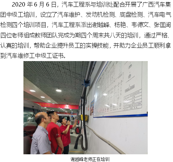 严培训 提技能 ——学校开展了广西汽车集团中级工培训