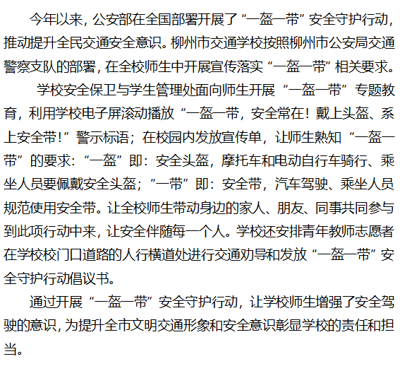 柳州市交通学校开展“一盔一带” 安全守护行动