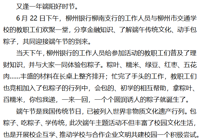 端午近,粽香飘 ——柳州银行与交通学校开展“迎端午”主题活动