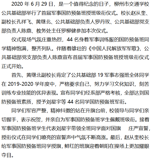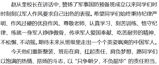 崭新起点,铭心一刻 ——记公共基础部首届军事国防预备班授班级衔仪式
