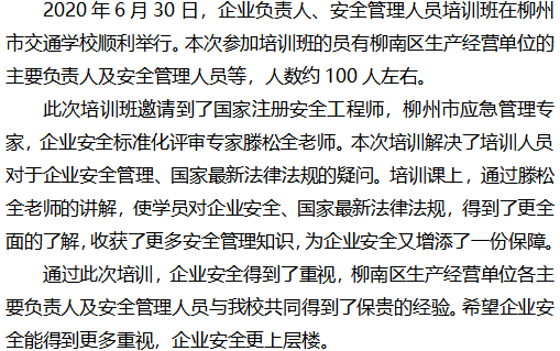 2020年企业负责人及安全管理人员培训班顺利举行
