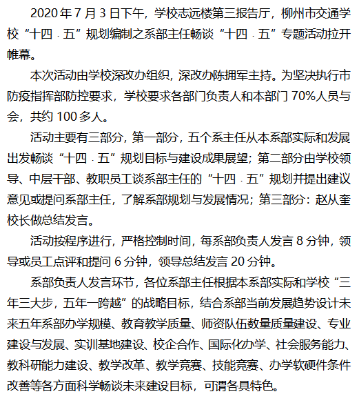 欲谱新曲好动人 且听娇莺唱新声 ——柳州市交通学校“十四﹒五”规划编制之 系部主任畅谈“十四﹒五”专题报道