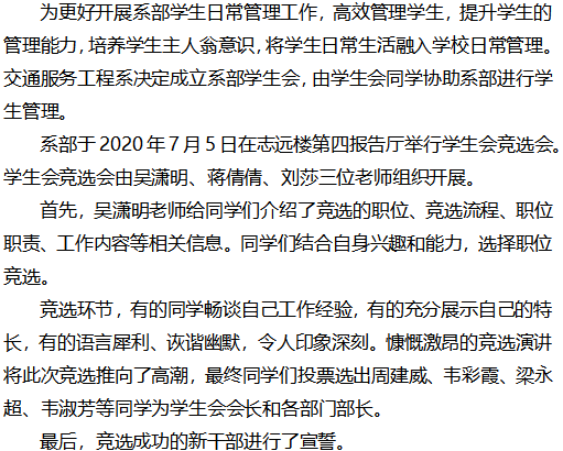 激扬青春 自律自强 ——交通服务工程系学生干部竞选会圆满成功