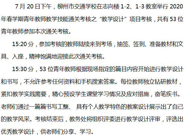“强基础促创新 展魅力提素养” --柳州市交通学校举行2020年春学期青年教师教学技能通关考核之“教学设计”项目考核