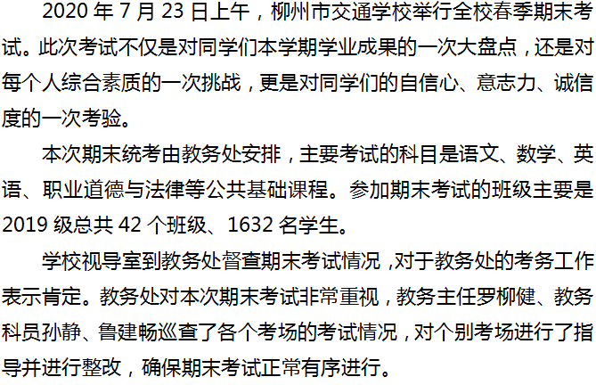 期末考试,我们准备好了 ——记柳州市交通学校2020年春季学期期末考试