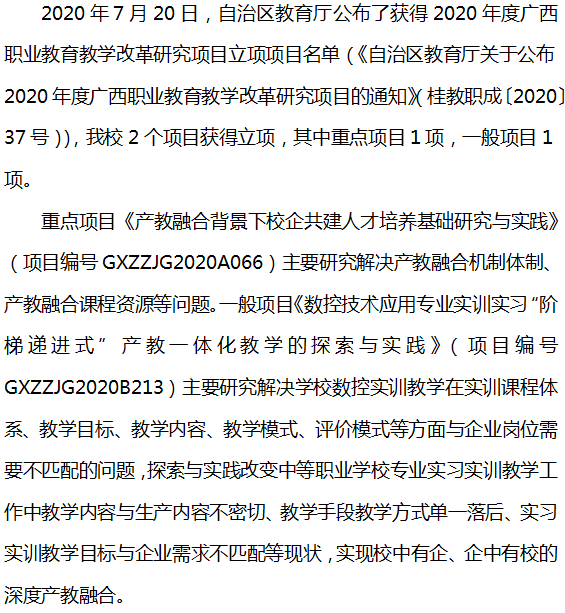 柳州市交通学校两项课题获2020年度广西职业教育教学 改革研究项目立项